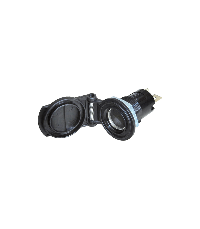 Passend für Norm- und Universalstecker, max. 16 A/6-24 V. Einbauloch-Ø 16 mm, Gewindelänge 8 mm. Anschluss mit Flachsteckern 6,3 mm.