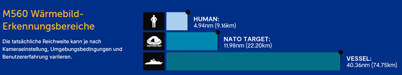 Die Raymarine FLIR M560-LRF (E70683) ist ein multispektrales Hochleistungs-Kamerasystem mit gekühltem MWIR-Wärmesensor, integrierter 4K-Low-Light-Farbkamera, LED-Spotlight und Laser-Entfernungsmesser. Dieses professionelle System wurde für anspruchsvolle maritime Anwendungen entwickelt und ermöglicht eine präzise Zielerkennung, Identifikation und Entfernungsmessung über große Distanzen – unabhängig von Lichtverhältnissen oder Wetterbedingungen.