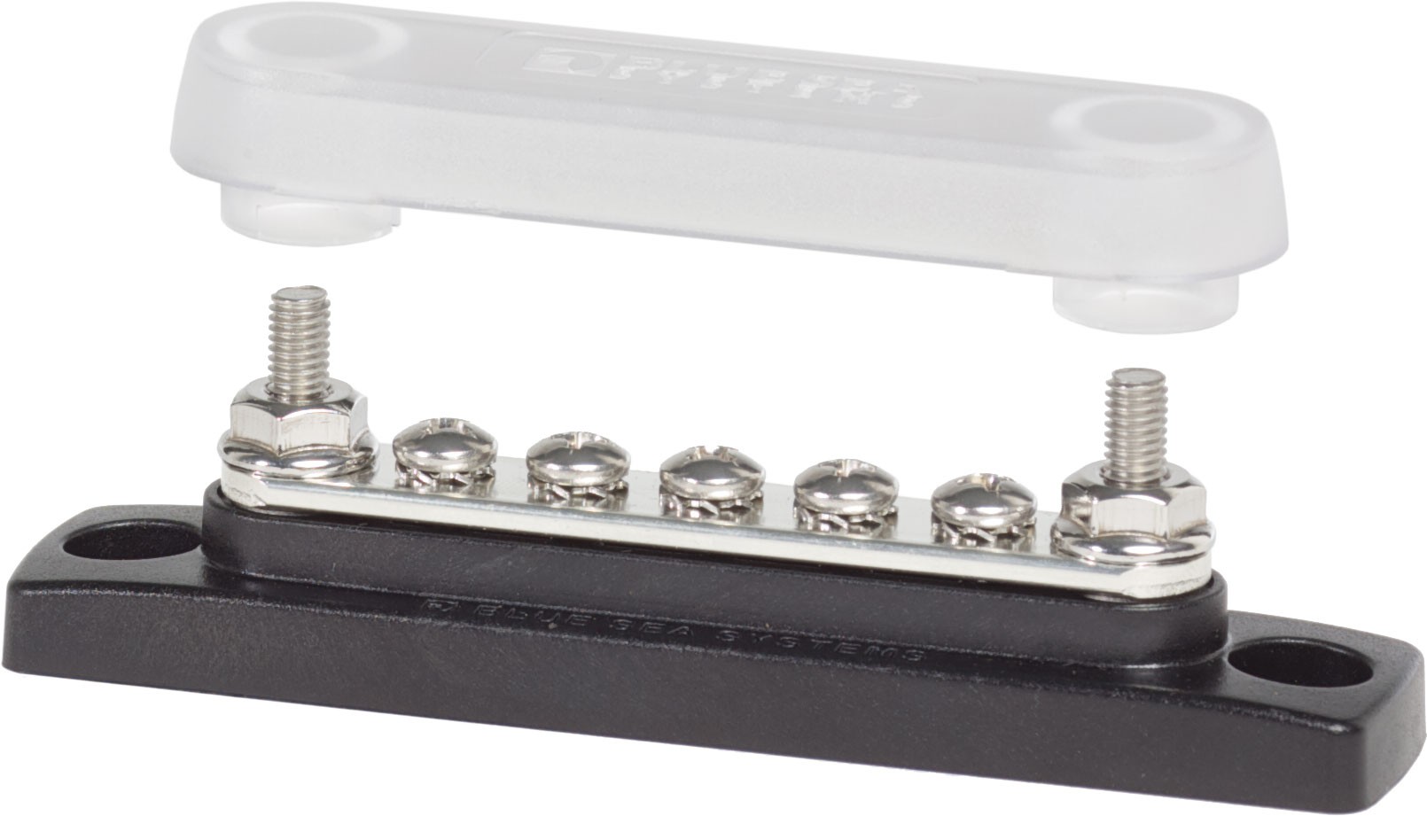 BlueSea 2314 Massesammelschiene 100A mit Abdeckung – SMS 7 (2x M6 & 5x M4)