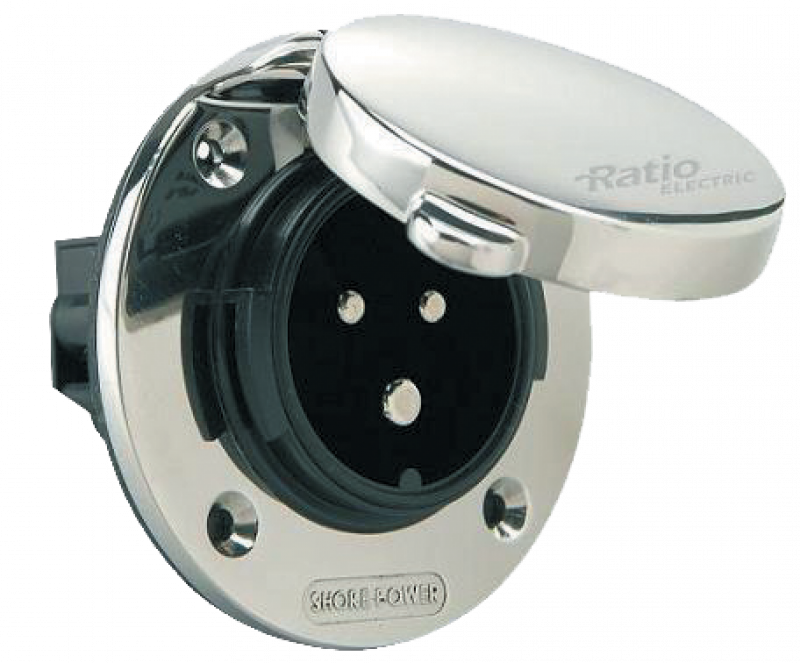 Die neue auf den CEE-Steckverbindern basierende Landanschluss-Steckverbindung ist speziell für den Einbau auf Deck oder am Heck von Yachten konstruiert worden. Das kompakte wasserdichte Edelstahlgehäuse des Einbausteckers (IP 67) passt sich formschön und unauffällig an Deck ein. 230V / 32A.