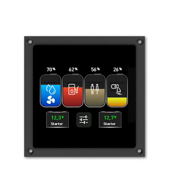 - Anzeige: 4 Tankfüllstände + 2 Batteriespannungen