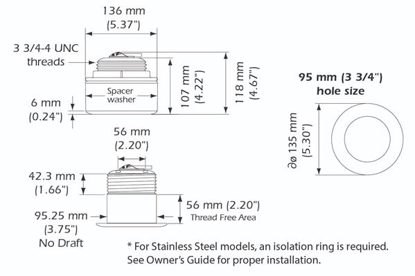 - Auch in einem Bronzegehäuse ( B175M ) zur Verwendung in einem Glasfaser- oder Holzrumpf erhältlich