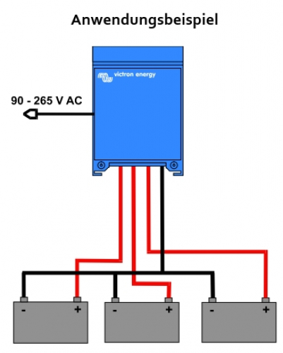 Drei getrennte Ausgänge zur gleichzeitigen Ladung von drei Batteriesätzen Jeder Ausgang liefert den vollen Strom.